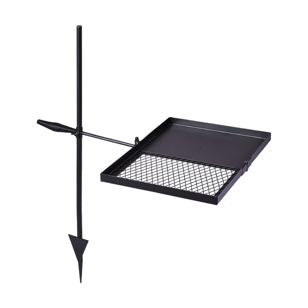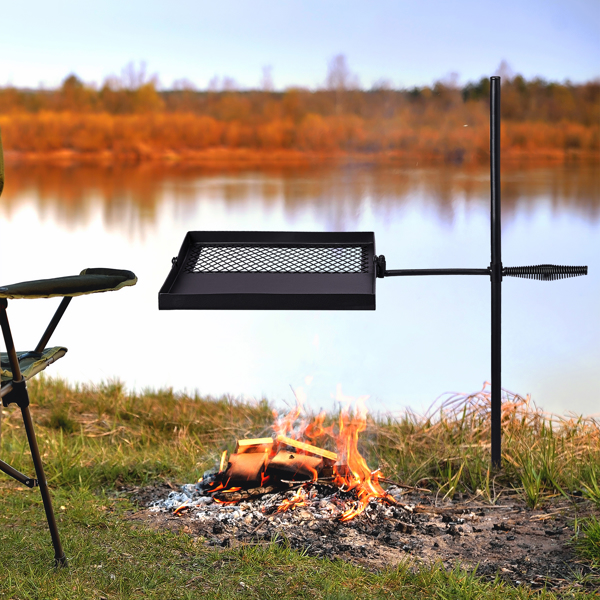 Cook your favorite meals over an open flame with ease using this Folding Swivel Campfire Grill. Made of durable, fire-resistant steel, this portable cooking grate is built for performance in outdoor environments. The double-section design includes both a grill grate and a grill pan, giving you the flexibility to sear, fry, or grill with a single setup. The height-adjustable and 360° rotatable grate ensures even heating and temperature control. Lightweight, foldable, and quick to assemble, it comes with a convenient carrying bag, making it the perfect companion for camping trips, BBQs, or backyard fires.