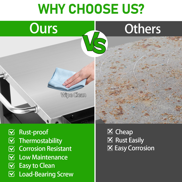 2. Foldable Tabletop: The side tabletop can be easily folded to widen or shorten the workspace, offering extra room for food prep during outdoor gatherings or compact storage when not in use.