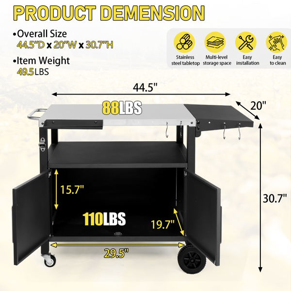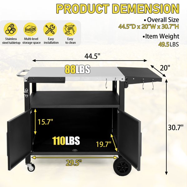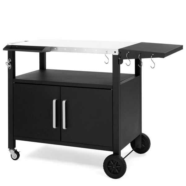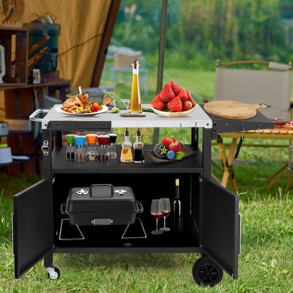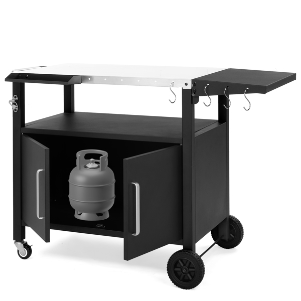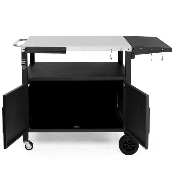 1. Ample Storage Space: This grill cart features a spacious storage cabinet and an open middle shelf for easy access to plates, cups, or kitchen gadgets. Keep all your BBQ essentials neatly organized and at your fingertips.